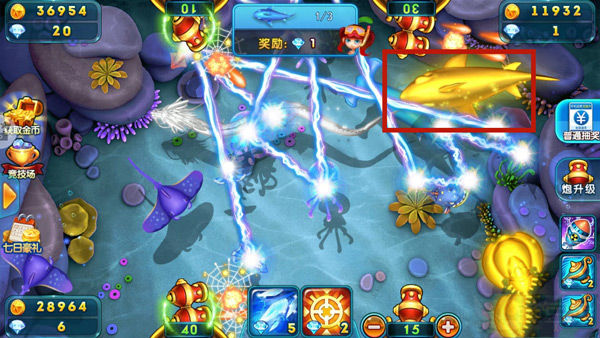 这样概率会非常高,打鱼打七寸,鲨鱼就打它的鱼鳃,魔鬼鱼就打双鳍,趁着魔鬼鱼双鳍打开的时候发射炮弹