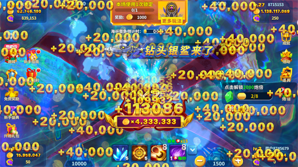 攻打大鱼能获得更多金币和钻石奖励,但同时也需要消耗更多的金钻,如大白鲨、大金鲨、大海怪等。还要注意的是,如果大鱼还没游到你面前,你使劲拼命进攻也是捕捉不到的,还浪费金币。