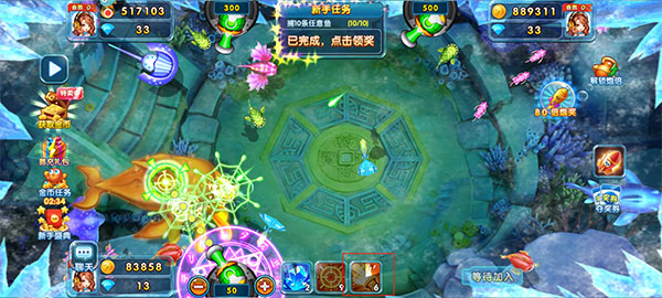 3、道具使用:游戏中会随机出现多种道具,如炸弹、冰冻弹等。炸弹可以一次性捕获大量鱼类,而冰冻弹则可以使鱼群暂时静止,为捕捉提供便利。玩家需要明智地使用这些道具,以提高捕鱼效率。