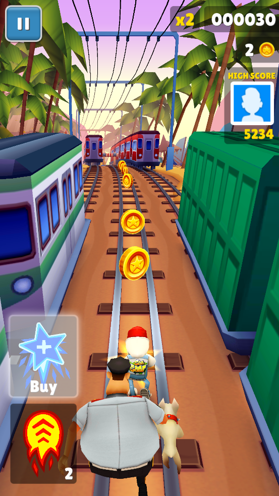 地铁跑酷夏威夷版是一个休闲益智游戏。不少玩家对于地铁跑酷类型的游戏会比较的感兴趣,实际上地铁跑酷也分为好几种不同的版本,在这个版本中,玩家将体验到布满椰子树、草屋、蓝蓝的海滩的夏威夷风景,还有收集提基神像面具获得道具奖励的任务等待玩家去完成。