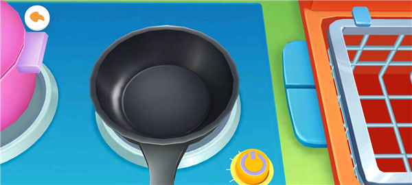 6、点击开关,滑动锅中的油,随之将食材放入。