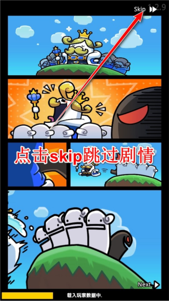 1.在下载王位争夺战之后安装到手机进入游戏,点击skip跳过剧情。