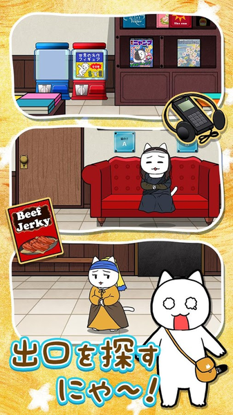 2、经典画风沉浸体验:延续前作卡通风格,明快的色彩、简洁的线条勾勒出可爱的小白猫与奇妙的美术馆场景。熟悉的画风能快速拉近与用户的距离,带来沉浸式体验。