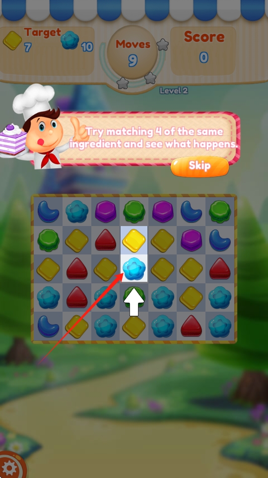 3、根据提示将相同颜色形状的物品滑动消除。
