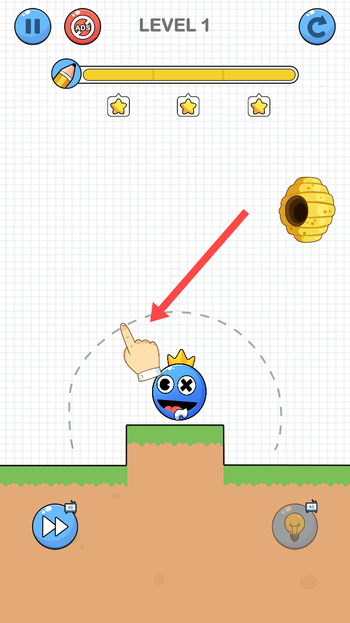 1、基础解谜操作入门:进入关卡后观察怪物位置与障碍分布,滑动屏幕绘制支撑桥或引流通道,点击播放按钮触发救援动画,首次体验通过箭头指引掌握线条绘制与物理机制联动。