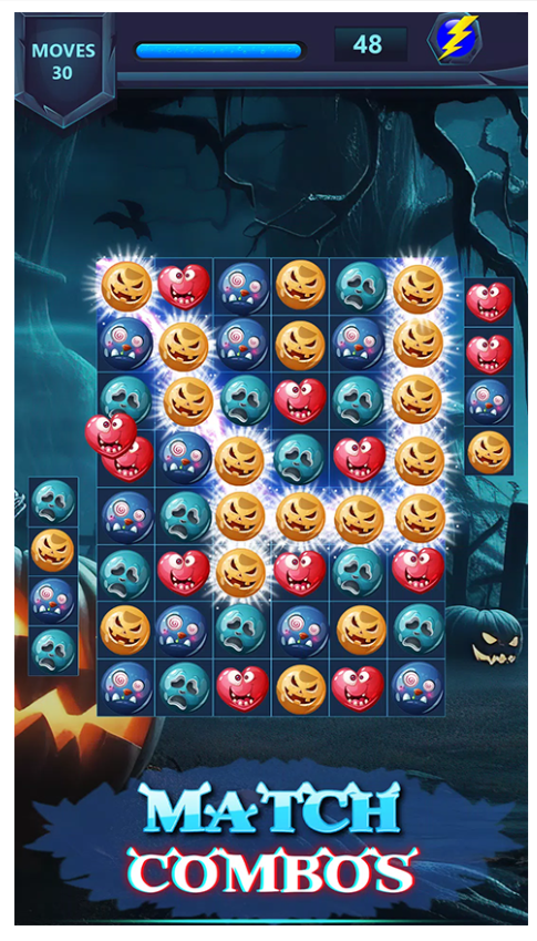 1、观察盘面布局,寻找相同怪物脸进行连接,三个及以上即可消除,特殊组合触发特效。