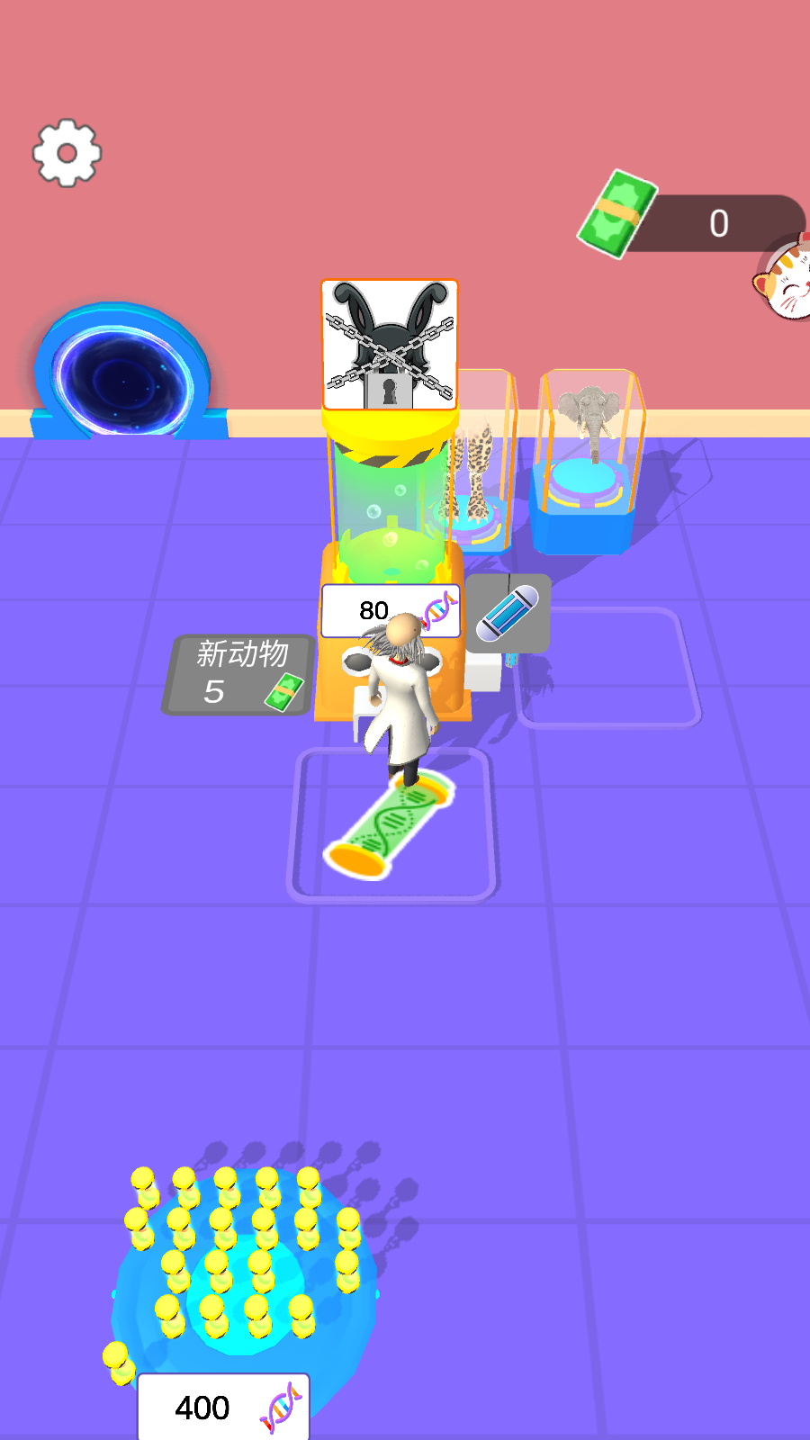 3、获取到的基因可以换取新道具,然后拿着新道具换钱即可购买更强大的动物。