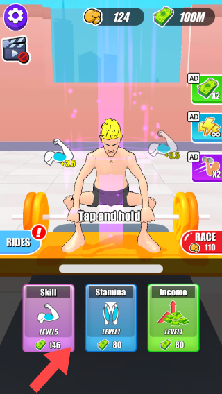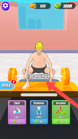 1、点击【Tap and hold】举起杠铃。