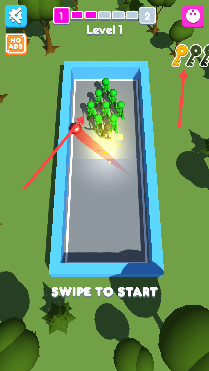 2、精准操控投掷:通过调整力度和方向,操控保龄球投掷出去,利用物理原理,让球以最佳轨迹击中更多小人。