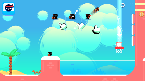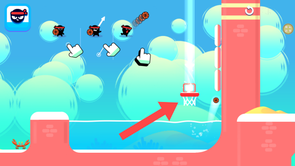 1、滑动蓄力投篮:在屏幕上滑动手指蓄力,拖拽方向调整投篮角度,松手后篮球按预设轨迹飞行,需精准计算障碍物位置与反弹路径,尝试找到最佳的入筐方案。