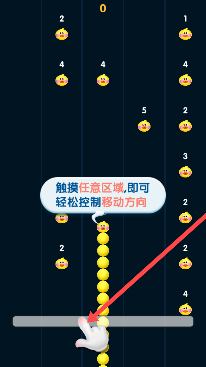 1、简洁画面敏捷考验:画面由黄色小球与彩色方块构成,操作贪吃蛇状长条吃豆得分,标有数字的方块会消耗豆豆作为过路费,持续挑战反应敏捷度与操作精准度。