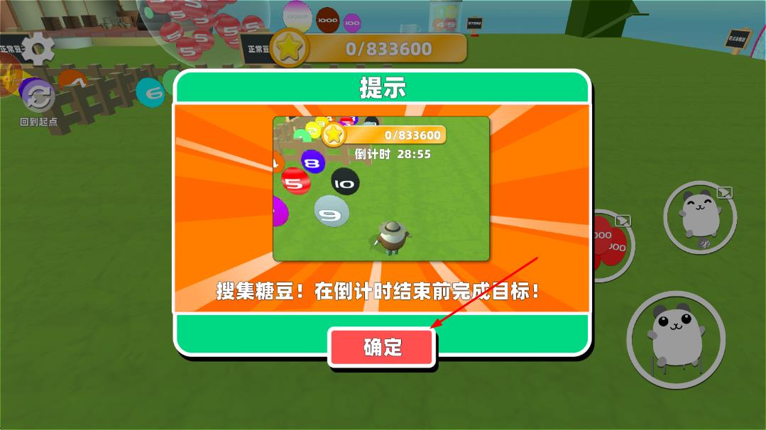 2、在倒计时完成前,收集到任务所需的糖豆即可通关。