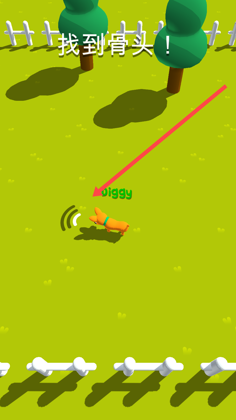 2、移动屏幕操控狗狗寻找骨头。