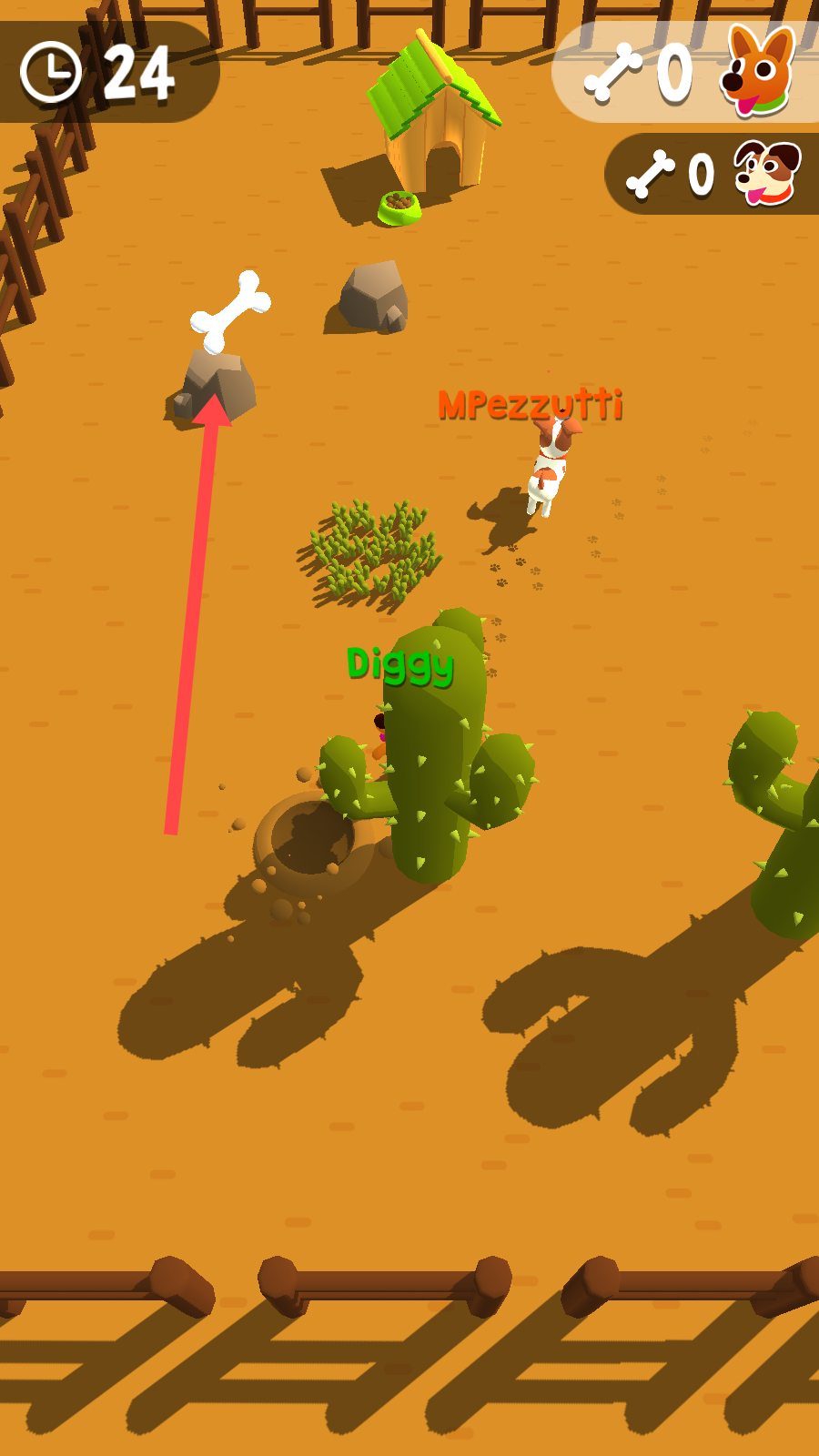 2、独特玩法机制:运用狗狗的嗅觉寻找骨头,挖掘并保护骨头,同时与对手竞争,独特的玩法带来新颖的游玩体验。