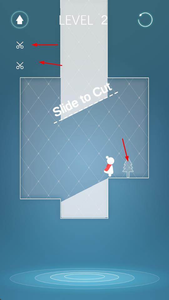 3、每关有3次切割机会,切割越少并让小人到达小树旁的分数越高。
