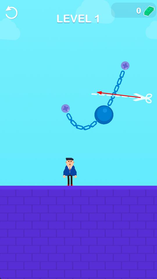 1、切断铁链,使铁球击中人。