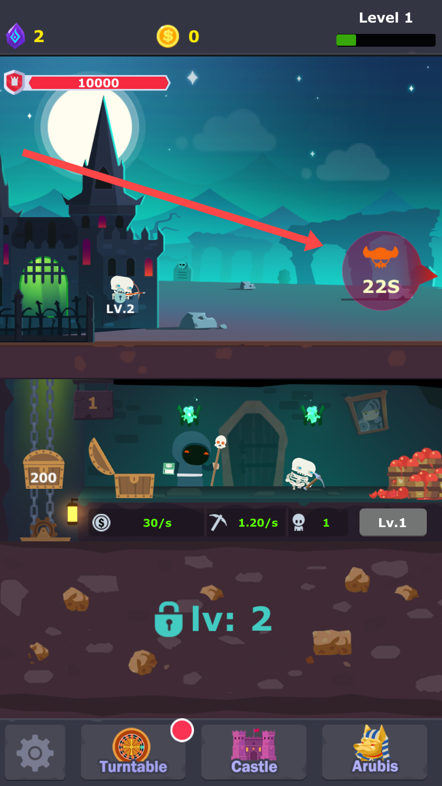 1、城堡防御升级:用户需要升级城堡,建造箭塔和弹射器,提升防御能力,最终抵御人类军队的攻击。