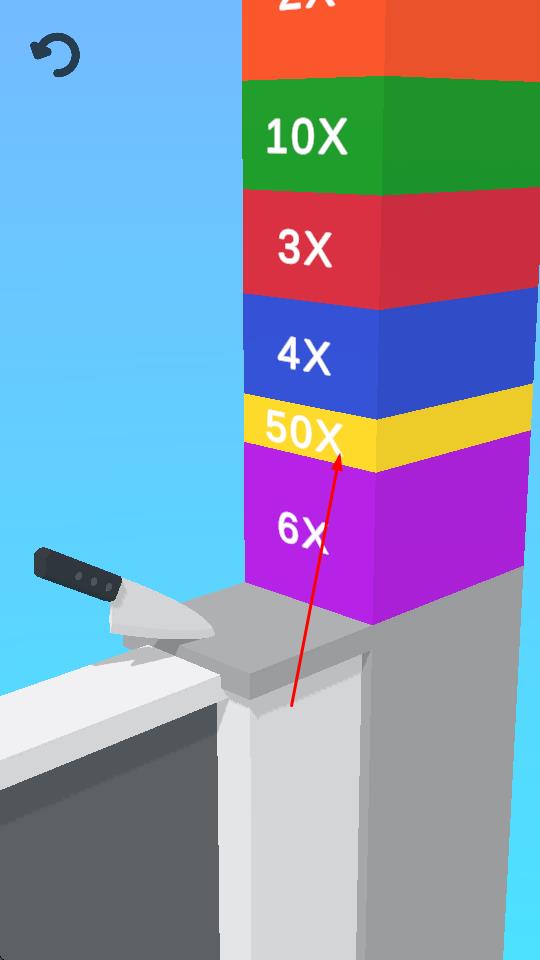 3、终点有各种倍率的区域,用刀刃击中可获得金币倍率。