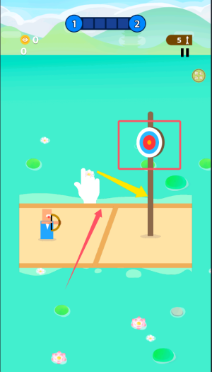 1、上线后点击页面控制箭头方向,瞄准靶心,瞄准后放手,射击靶心。
