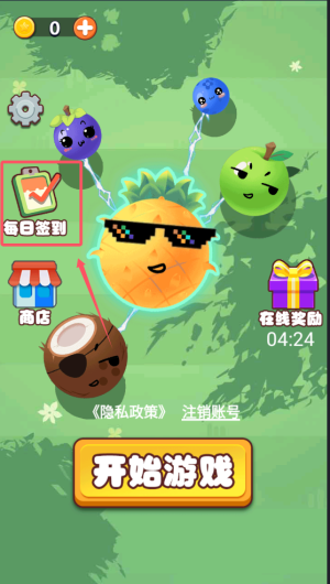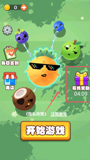 1、基础合成模式,通过拖拽将两个相同水果合并,生成更高级的水果品种,最终达成关卡目标。