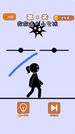 1、创意画线机制,采用自由绘制物理线条的核心玩法,玩家可创造各种形状的结构来帮助火柴人闯关。线条的粗细、角度都会影响实际效果。