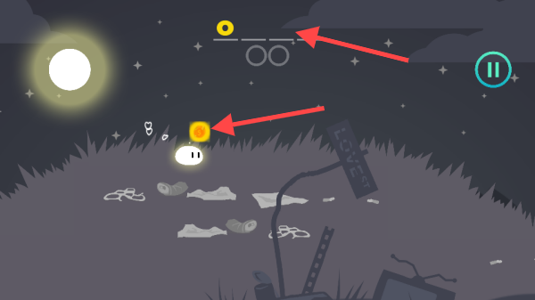 3、道具合理使用:收集并合理使用游戏中的小道具,帮助克服困难,最终让小光球成功融入月球,开启下一个关卡的冒险。