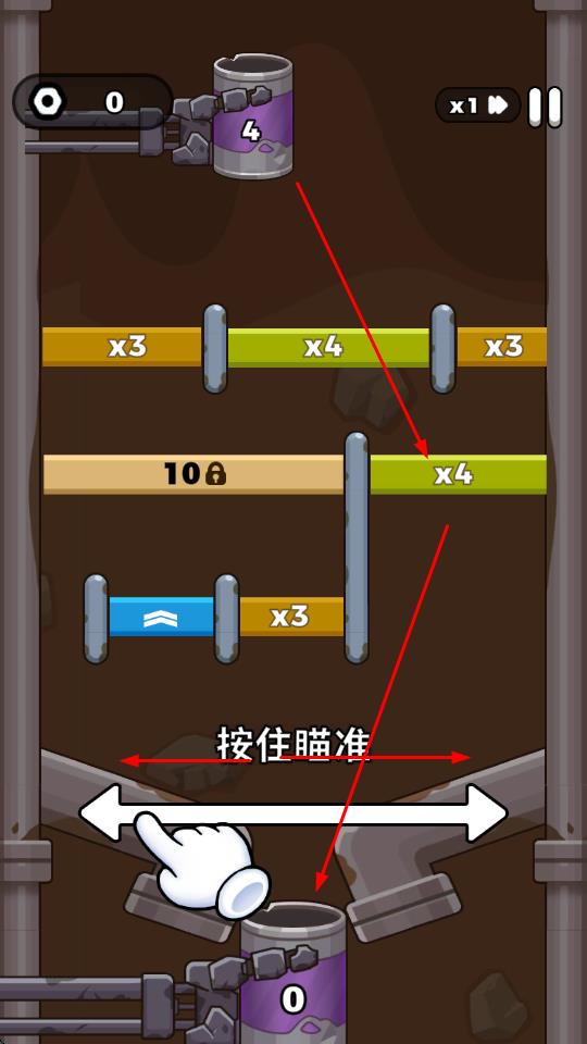 2、瞄准增加小球:滑动瞄准并点击,让小球穿过更多地方以增加数量,为后续战斗和奖励获取做准备。