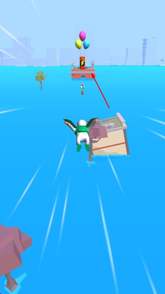 4、滑行能量积累:游戏开始设有一系列滑行关卡,玩家需吃掉能量才能实现快速飞行。