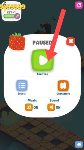 2、游戏中若遇暂停界面,点击标有【Continue】的绿色播放按钮,即可继续游戏进程。