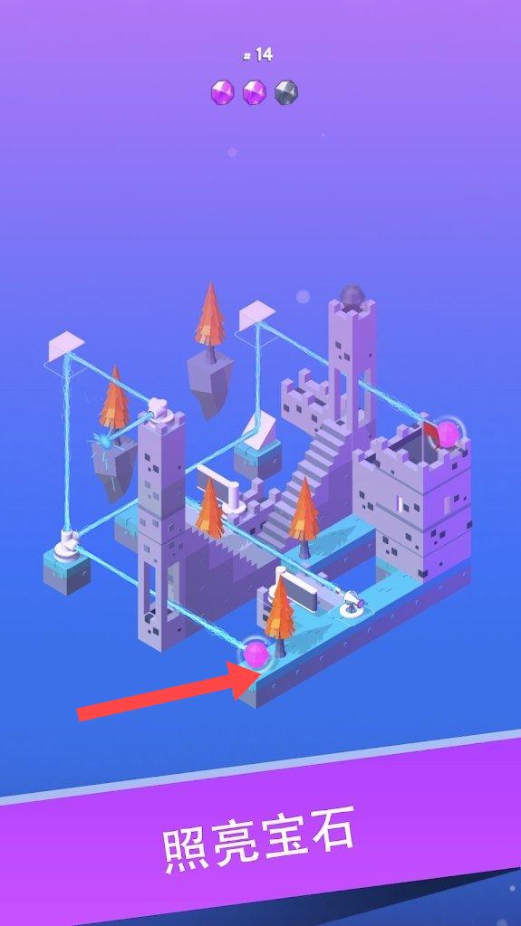 1、在城堡场景里,依照箭头的指示去操作,借助机关或者光线来“照亮宝石”,以此完成关卡目标,进而获取分数。