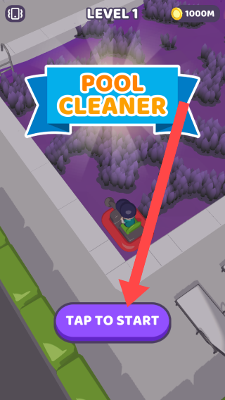 1、进入游戏界面,看到标有【TAP TO START】的紫色按钮,点击它即可开启 “泳池清洁” 游戏之旅。