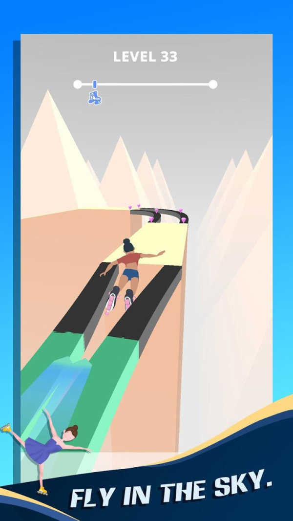 2、进入【LEVEL 33】关卡,操控角色在天空中飞行,躲避赛道上的各类障碍物,保持前行。