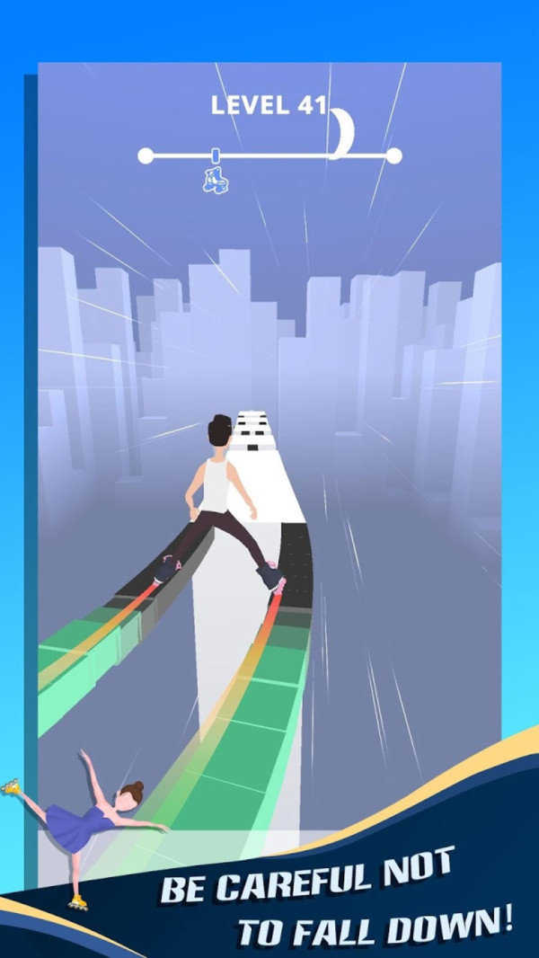 3、挑战【LEVEL 41】时,留意提示【BE CAREFUL NOT TO FALL DOWN】,避免角色掉落。