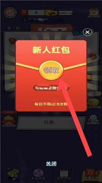 2、出现“新人红包”界面,点击【领取】按钮,获取红包奖励,获得大额金钱。