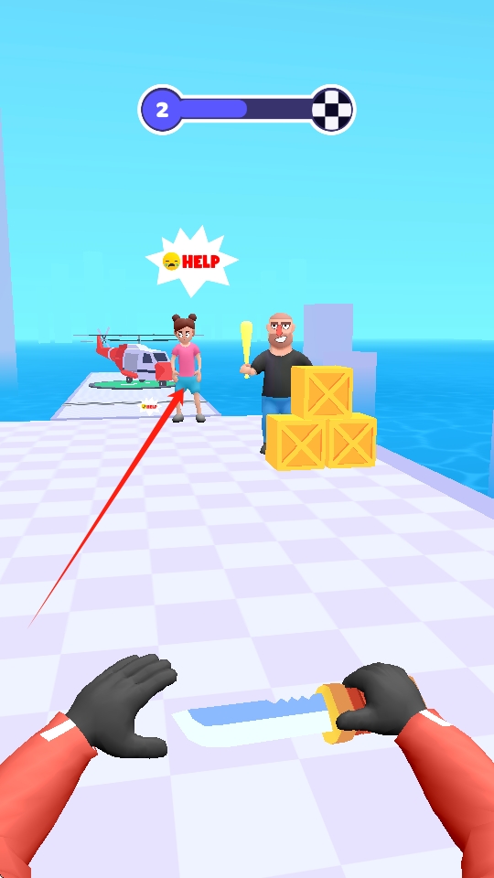 2、瞄准敌人出击:调整准星位置与蓄力力度,精准瞄准敌人后投掷飞刀,消灭敌人并保证人质安全。