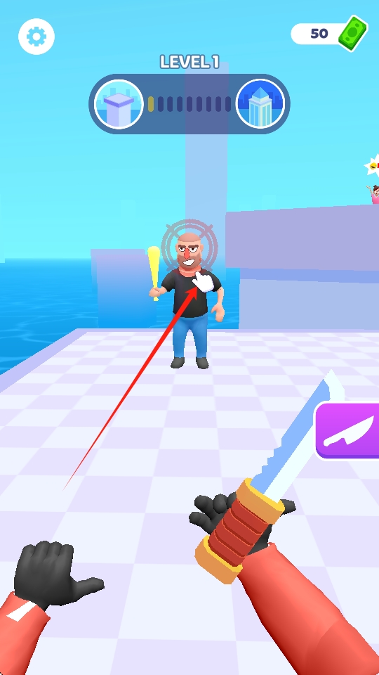 2、简易操作方式:操作十分简单,玩家只需将飞刀准星对准敌人,轻松投掷即可发起攻击,容易上手。