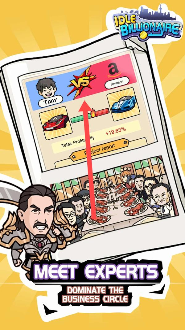 3、在对决界面,关注箭头所指的“VS”标志,参与商业对决提升利润,如增加19.63%,逐步主导商圈。