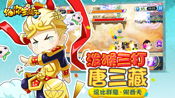 3、选择逗比群魔闹西天模式,操控唐二藏等角色参与无厘头闯关,解锁浅猴三钓等搞笑技能,享受欢乐对战。