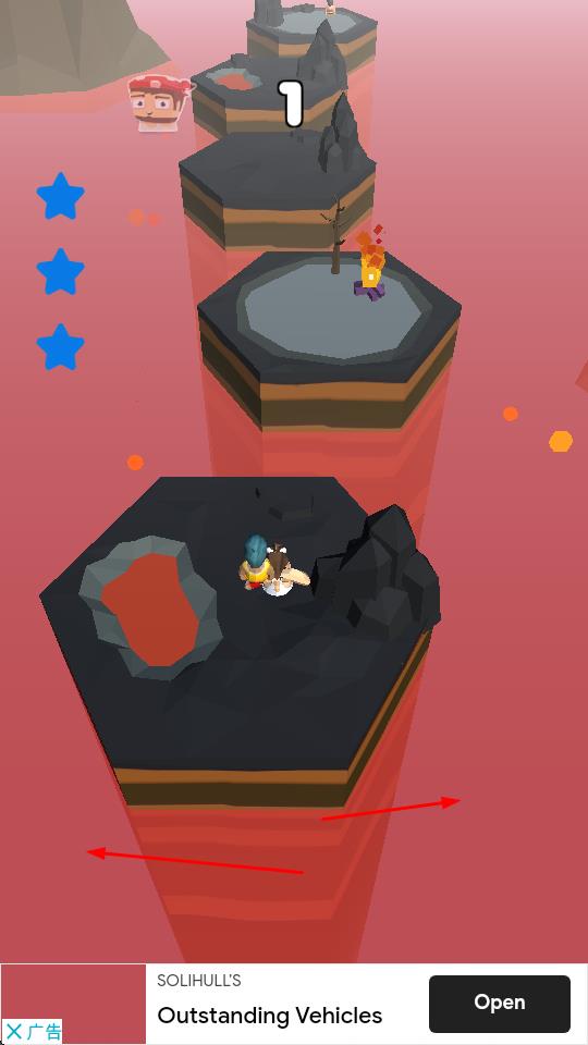 1、按住即可开始游戏,左右滑动可以控制人物左右移动,按住后人物可以自动跳跃,前面的小岛会改变位置。