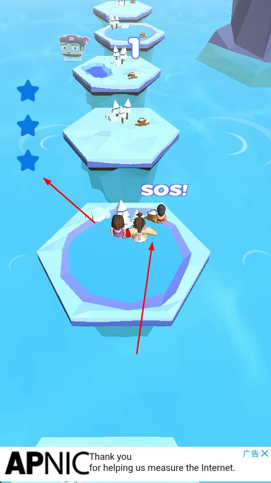 2、小岛上会有需要救援的人,跳过可以将去救起,跟随一起跳跃,注意不要让后面的人掉队落入水中了。