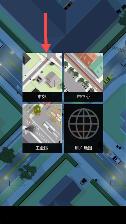 2、选择【市郊】地图,开启交通管理挑战,熟悉不同区域的道路布局与交通情况。