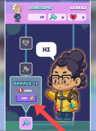 1、界面上方显示LONESOME及LEVEL1,表明当前角色名与等级,有一些图标,代表不同的功能,整体风格偏向休闲养成。