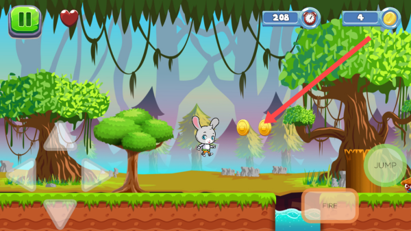 3、需要密切的关注上方金币与障碍,并且适时的点击跳跃键,精准跳跃获取金币、避开阻碍。