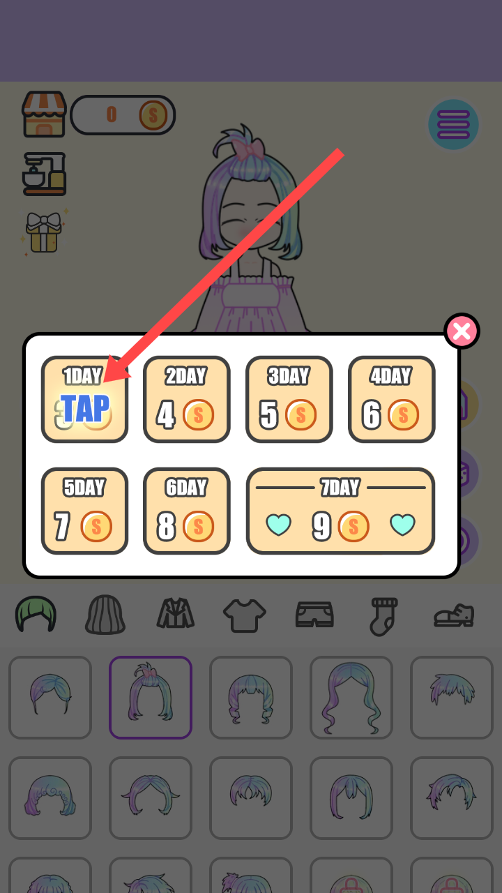 2、首日登录时,点击【1DAYTAP】领取奖励,获取初始资源,为后续游戏进程积累基础,助力游戏更好地展开。