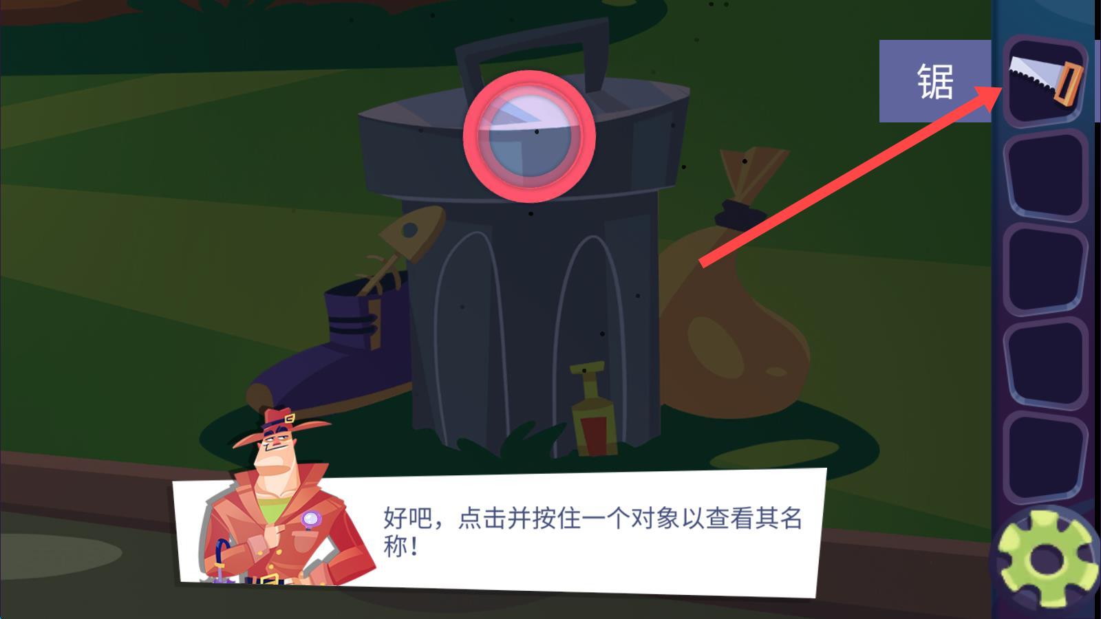 2、进入游戏开始阅读剧情,在合适的场景收集有用的道具,点击拾取至右侧工具栏,点击并按住一个对象以查看对象的名称。