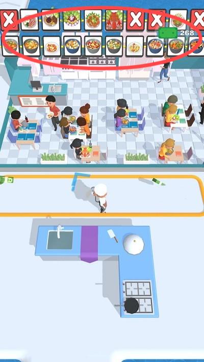 3、最上方圈起来的是每个客人所点的食物,我们要根据菜单进行制作食物。