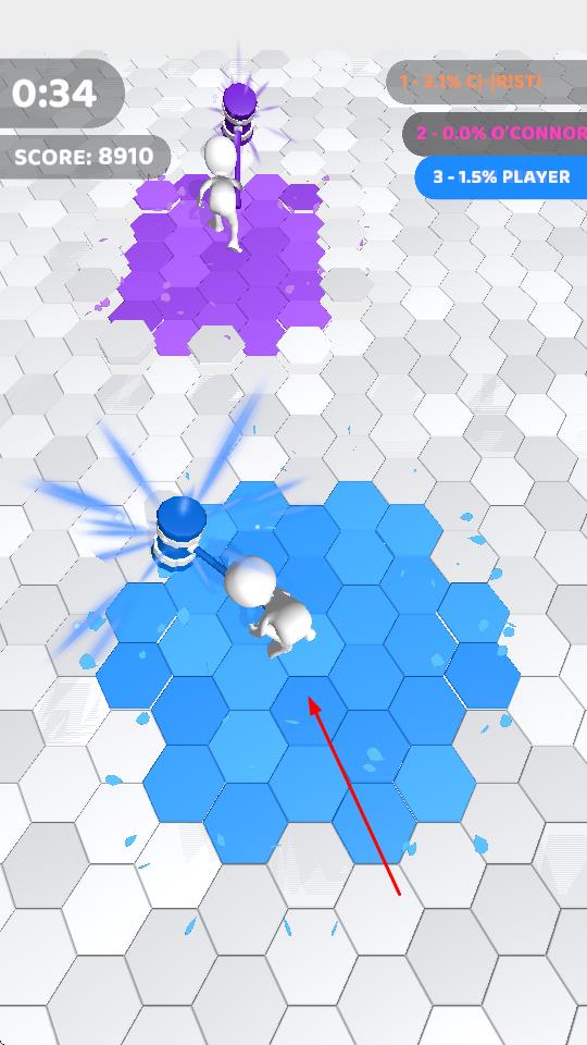3、在有限的时间争取染色更多区域,每染色一块区域都会得分,最后通过比较谁染色区域最大来获胜。
