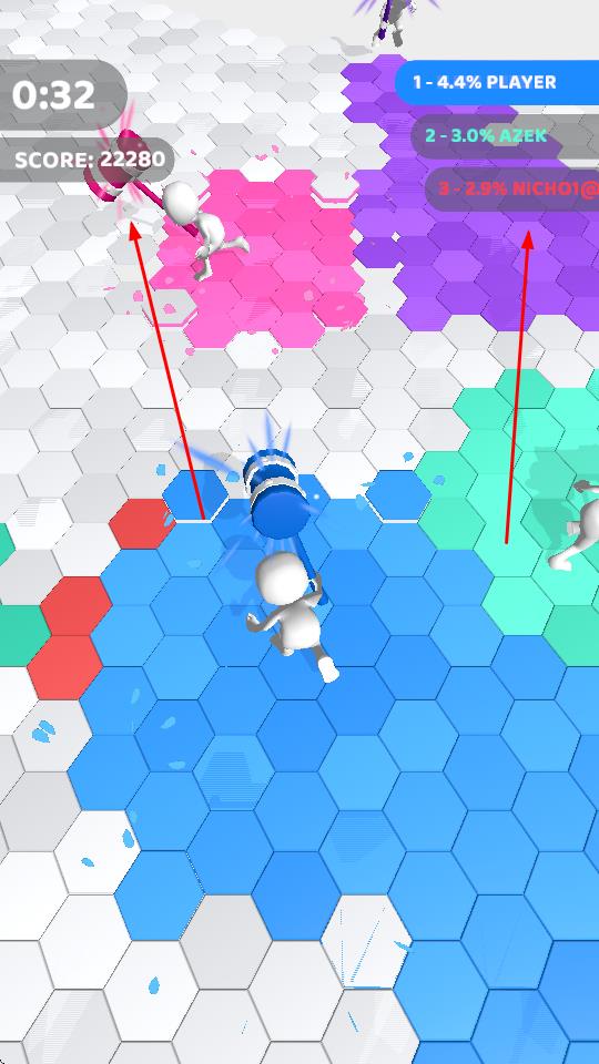 4、限时策略对决:在限定时间内,运用策略与技巧,尽可能多地占领六边形区域,成为场地霸主。