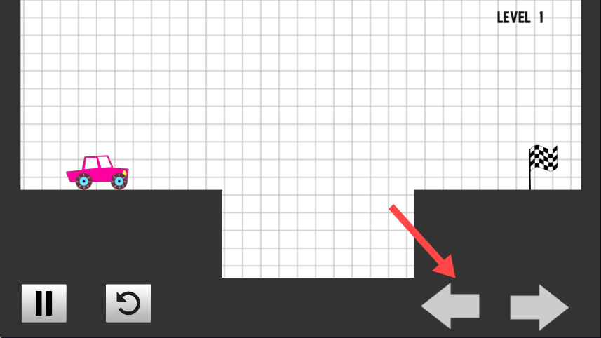 3、通过下方左右箭头按钮操控汽车,使其精准移动并顺利抵达终点旗帜处,完成关卡目标。