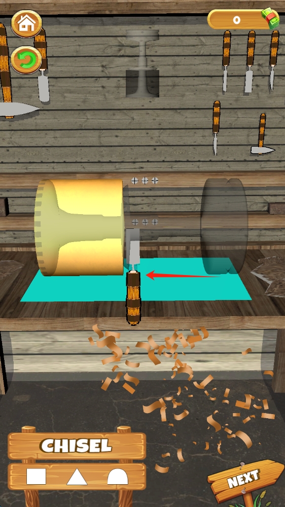 1、点击屏幕开始游戏合理规划削切路径,点击屏幕控制力度与方向,精准避开障碍物,提升削木效率。